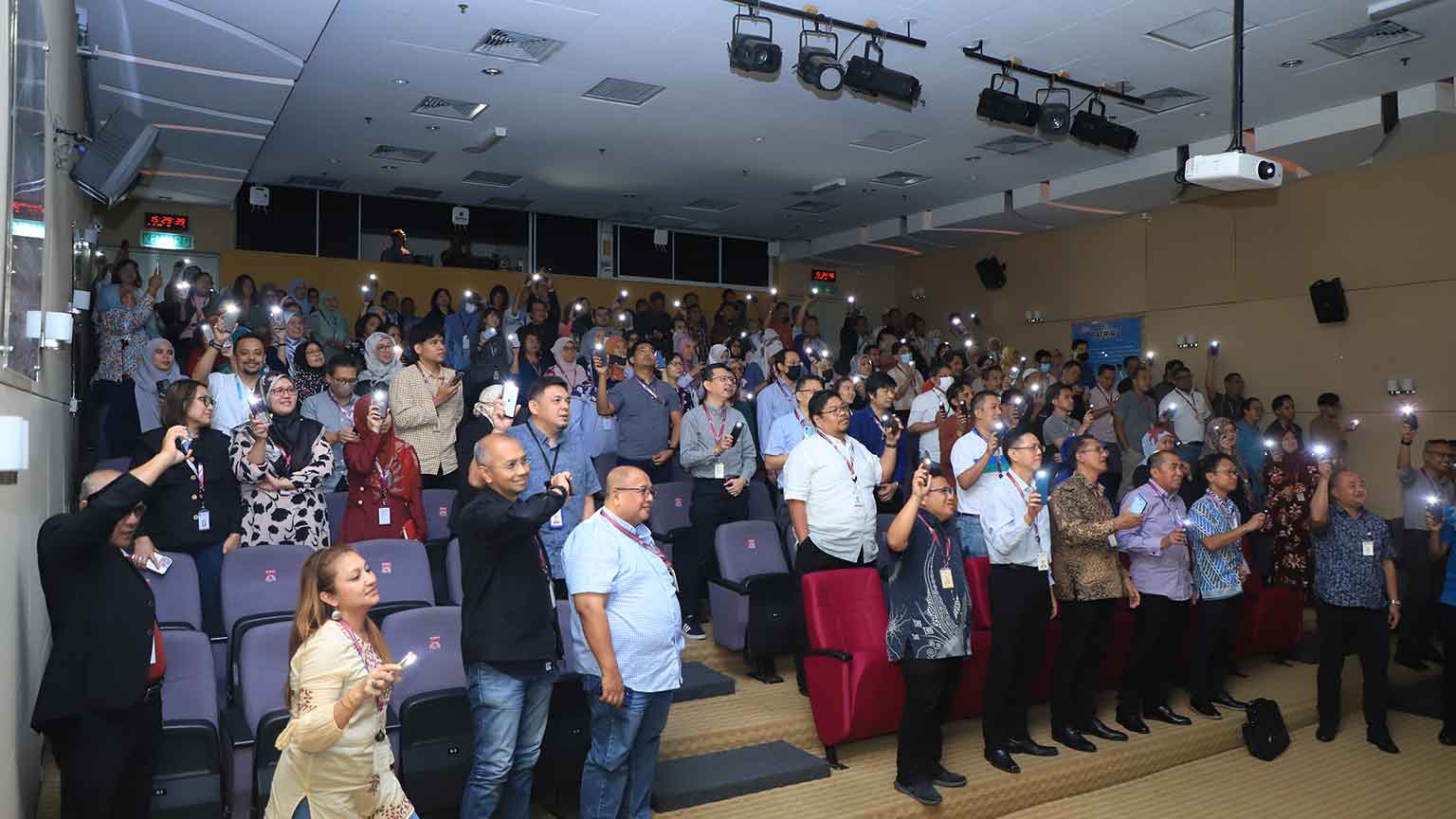 On 11 August 2023, MIMOS Conveys Appreciation and Bids Farewell to the Chairman. The auditorium was filled with MIMOS employees, all gathering to express their gratitude to Chairman YBhg Dato’ Sri Ibrahim Ahmad. They acknowledged his significant contributions to MIMOS, particularly during its challenging moments. Those unable to secure seating or standing space joined their Kulim-based colleagues via Teams to partake in this special occasion.