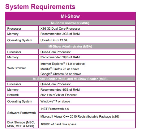 Mi-Show provides easy-to-use APIs on both the source and target PCs as well as for web control via browser for sending and receiving of video streams of desktop captures. - Network Device Independent